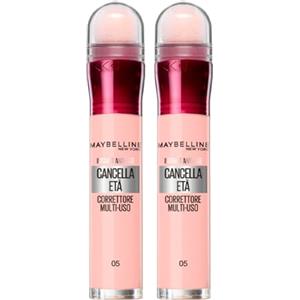 Maybelline New York Instant Anti-Age Cancella Età Correttore Multiuso Colore 05 Rosa Illuminante con Applicatore a Spugnetta - 2 Cosmetici