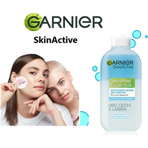 Garnier Sensitive Essential Struccante Bifase 2in1 Viso e Occhi 200 ml - Waterproof, Adatto a Pelli Sensibili, Senza Profumo e Alcool