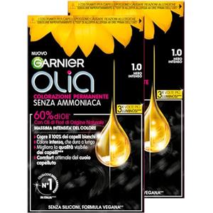 Garnier 2x Garnier Olia Midnight Colorazione Capelli Tinta Permanente Colore 1.0 Nero Intenso Senza Ammoniaca Fragranza Delicata - 2 Tinte