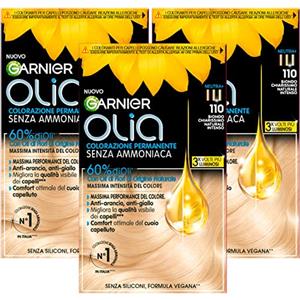 Garnier Olia Tinta Capelli Permanente Senza Ammoniaca Colorazione con Oli di Fiori di Origine Naturale ad Azione Illuminante e Nutriente Colore 110 Biondo Chiarissimo Naturale Intenso - 3 Confezioni