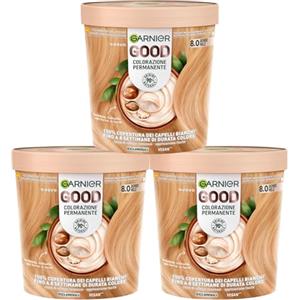 Garnier Good Tinta Colorazione Permanente Fino a 8 Settimane Colore Brillante e Luminoso Copre il 100% dei Capelli Bianchi Formula Vegana Senza Ammoniaca 8.0 Biondo Miele - 3 Confezioni