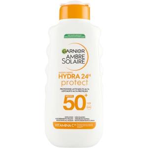 Garnier Ambre Solaire Hydra 24H Latte Solare SPF50 - Idratazione 24 ore, Resistente all'acqua, Non grasso, con Vitamina E