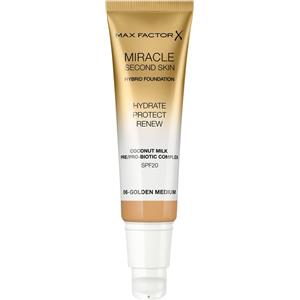 Max Factor Miracle Second Skin Fondotinta Liquido 30ml 06 Golden Medium - Finish Naturale, Idratante con Latte di Cocco e SPF 20