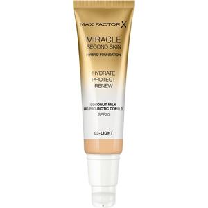 Max Factor Miracle Second Skin Fondotinta Liquido 30ml 03 Light - Idratante con Latte di Cocco e SPF 20