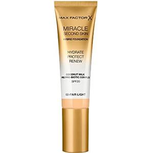 Max Factor Miracle Second Skin Fondotinta Liquido 30 ml 02 Fair Light - Idratante con Latte di Cocco e SPF 20