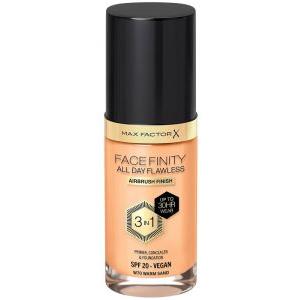 Max Factor Fondotinta Facefinity All Day Flawless 3-in-1 - Correttore, Primer e Fondotinta Liquido Vegan, Copertura Modulabile, Tenuta Fino a 30 Ore, SPF20 - W70 Warm Sand, 30 ml