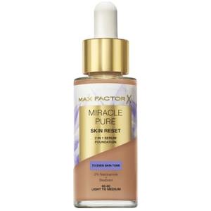 Max Factor Miracle Pure 2in1 Skin Reset Fondotinta in Siero 30 ml - 60-80, Light to Medium, Vegan, Copertura Media, Finish Matte Satinato