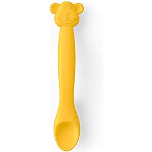 Suavinex Cucchiaio In Silicone Giallo per Bambini 4 Mesi, Flessibile e Morbido con Manico Lungo a Forma di Scimmia