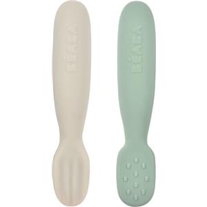 Béaba Set di 2 Cucchiai in Silicone Ergonomici Verde Salvia e Grigio Velluto per Bambini da 4 Mesi