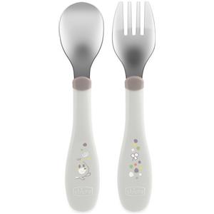 Chicco Posatine Inox 18M Grigio - Set di Posate per Bambini in Acciaio Inossidabile, Facili da Impugnare (Forchetta e Cucchiaio)