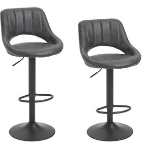 HOMCOM Set di 2 Sgabelli da Bar Girevoli con Schienale e Poggiapiedi, Altezza Regolabile, Finta Pelle Grigia