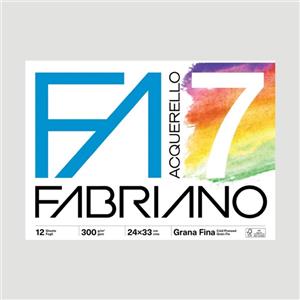 Fabriano Blocco Acquerello F7 - Formato 24x33cm, Grana Fine, 12 Fogli, Carta Collata per Tecniche Umide