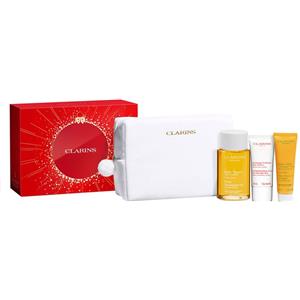 Clarins Huile Tonic Cofanetto Benessere Corpo - Olio Tonificante 100ml, Scrub Esfoliante 30ml e Balsamo Tonico 30ml