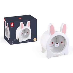 Janod Salvadanaio in Legno per Bambini a Forma di Coniglio con Apertura Magnetica e Lato Trasparente - Alta Capienza, A Partire da 3 Anni