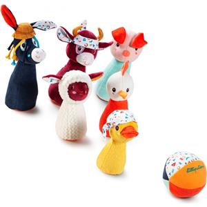 Lilliputiens Gioco Bowling Fattoria - Set con 6 Birilli Morbidi e Palla Sonaglio, Sviluppa Capacità Motorie dai 18 Mesi