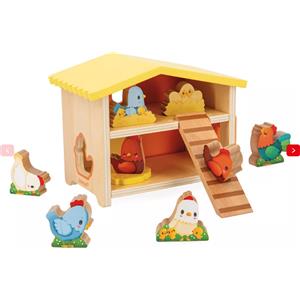 Janod - Il Mio Primo Pollaio in Legno con 9 Polli e Scala Removibile per Bambini dai 18 Mesi