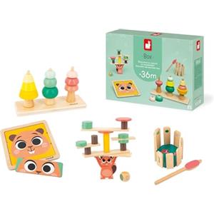 Janod Box Giochi Neonato - Giocattolo Educativo Multisensoriale per Bambini dai 36 Mesi con Abaco, Gioco di Equilibrio, Carillon e Puzzle
