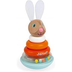 Janod Coniglietto Impilabile in Legno - Giocattolo Educativo per Sviluppo delle Abilità Motorie Fini - 12 Mesi