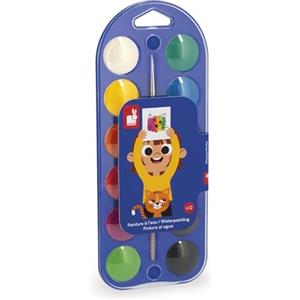 Janod Tavolozza per Pittura ad Acqua con 12 Pastiglie e Pennello - Facile da Usare e Lavabile, Ideale per Piccoli Artisti