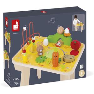 Janod Tavolo Multiattività Fattoria - 8 Giochi in Legno FSC per Bambini da 12 Mesi, Altezza 32 cm