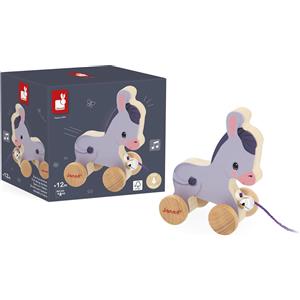 Janod Asinello da Tirare in Legno con Campanella - Giocattolo per Bambini da 12 Mesi, Stimola la Motricità e la Fantasia