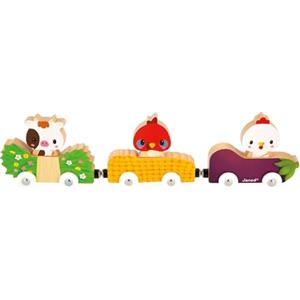 Janod - Giocattolo Multisensoriale Animali della Fattoria Magnetici in Legno FSC - 3 Veicoli e 3 Animali per Bambini dai 18 Mesi