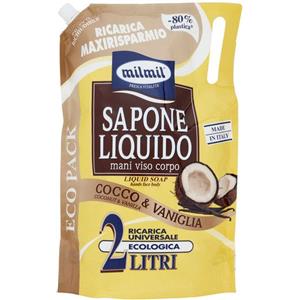 Mil Mil Sapone Liquido Eco Ricarica 2L Cocco & Vaniglia - Nutriente e Delicato con Antibatterico Naturale