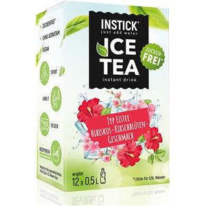 INSTICK Bevanda Istantanea Senza Zucchero al Gusto Tè Freddo Ibisco e Fiore di Ciliegio - 12 Buste da 2,5g