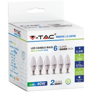 V-TAC Lampadina LED E14 4,5W Bianco Freddo 6500K a Candela - Kit da 6 Pezzi