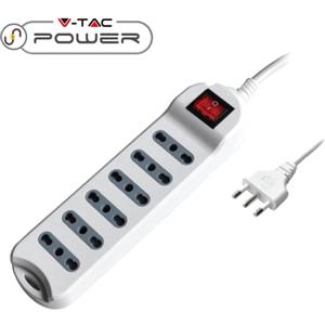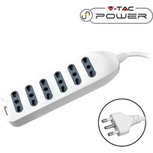 V-TAC Multipresa 6 Posti Bipasso 10/16A con Interruttore Luminoso e Cavo da 1,5 m - Bianco