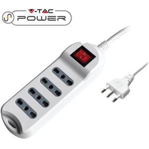 V-TAC Multipresa Ciabatta 4 Posti Bipasso con Interruttore Luminoso 10/16A 1,5 m Bianco