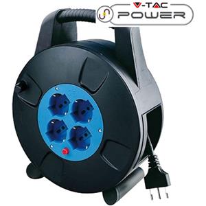 V-TAC Prolunga Elettrica Avvolgibile 10M con 4 Prese Schuko/Bipasso, Spina Italiana 16A, Interno/Esterno, Nero
