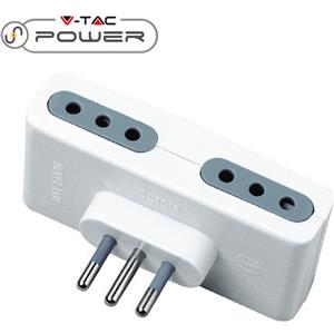 V-TAC Adattatore Multiplo Triplo 10A con 2 Prese Italiane 2P T e 1 Presa Schuko - Bianco