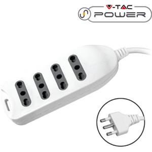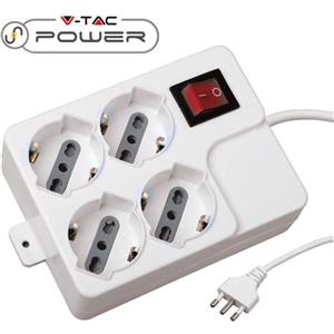V-TAC Multipresa Ciabatta 4 Posti Bipasso con Interruttore Luminoso 10/16A 1,5 m Bianco