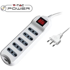 V-TAC Multipresa 6 Posti Bipasso 10/16A con Interruttore Luminoso e Cavo da 1,5 m - Bianco