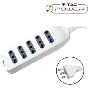 V-TAC Multipresa Ciabatta 5 Posti Bipasso con Interruttore Luminoso ON/OFF in Policarbonato Bianco