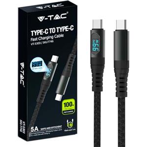 V-TAC Cavo USB-C a USB-C 1 Metro con Display LED - 100W PD 5A, Ricarica Rapida e Trasmissione Dati in Nylon, Compatibile con Smartphone e Tablet
