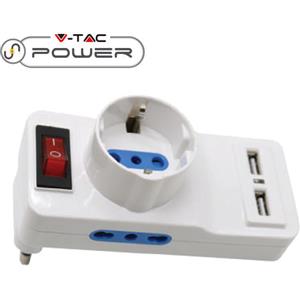 V-TAC Adattatore Multipresa Triplo con 2 Prese USB, Interruttore Luminoso e Spina Italiana