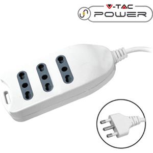 V-TAC Multipresa 3 Posti Bipasso 10/16A con Cavo da 1,5 m - Attacco a Parete Bianco