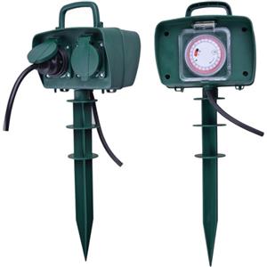 V-TAC Presa Elettrica da Giardino con Timer Meccanico, 2 Prese Schuko 16A, Cavo 3M, IP44