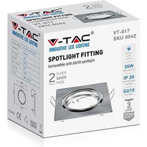V-TAC Portafaretto da Incasso Orientabile Rotondo Cromato per Lampadine GU10 - 2 Pezzi