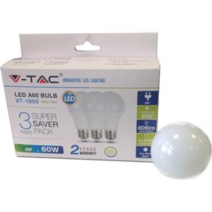 V-TAC Lampadina LED E27 8,5W A60 806 Lumen Bianco Caldo 3000K - Confezione da 3 Pezzi