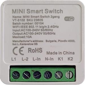 V-TAC Mini Smart Switch Wi-Fi 2 Canali - Compatibile con Alexa e Google Home