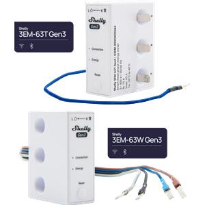Shelly 3EM-63 Gen3 - Contatore di energia Wi-Fi per impianti trifase e monofase, disponibile in versioni 63W e 63T, misurazione in 4 quadranti