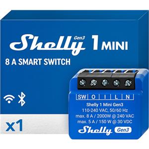 Shelly 1 Mini Gen3 - Interruttore Relè Intelligente WiFi e Bluetooth, 1 Canale, 8A, Contatti Puliti, Compatibile con Alexa e Google Home