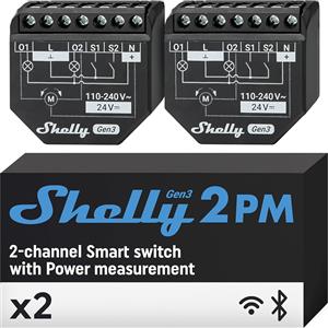 Shelly 2PM Gen3 Interruttore Smart WiFi e Bluetooth 2 Canali 16A/18A con Monitoraggio Consumi