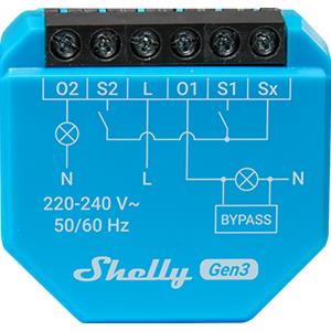 Shelly 2L Gen3 - Interruttore Intelligente Wi-Fi a 2 Canali, 700W Max, Senza Filo Neutro, Controllo per Alexa e Google Home