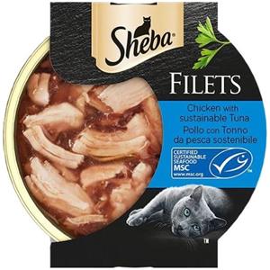Sheba Filets Pollo e Tonno - Cibo Umido per Gatti 60g con Tonno da Pesca Sostenibile