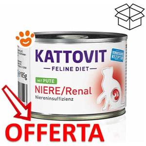 Kattovit Alimento Umido Dietetico per Gatti - Supporto Funzione Renale con Tacchino, 12 x 185 g