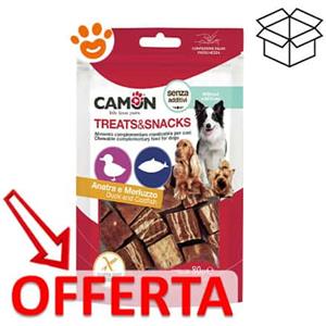 Camon Cubetti di Anatra e Merluzzo 80 GR - Snack per Cani con Chiusura Salvafreschezza